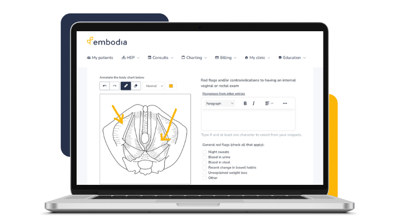 Embodia offers a wide range of charting features. Templates are made up of chart items to allow for maximal efficiency and customization when charting. Embodia provides a wide range of chart item templates that you can copy or edit. These include body charts, repeated movement charts, pain scales, and many more. Learn more about charting on Embodia in this short video tutorial.